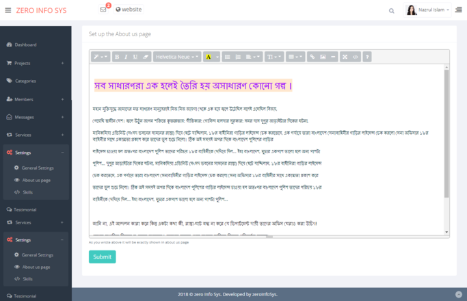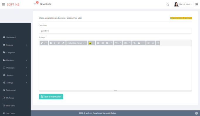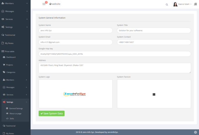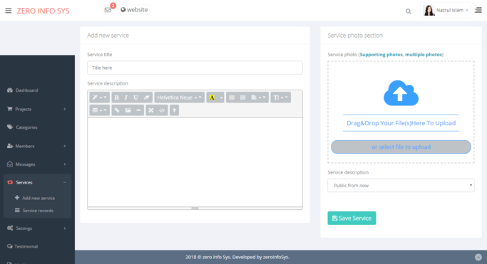 public view. Also save and maintain testimonial, email, services, price table,