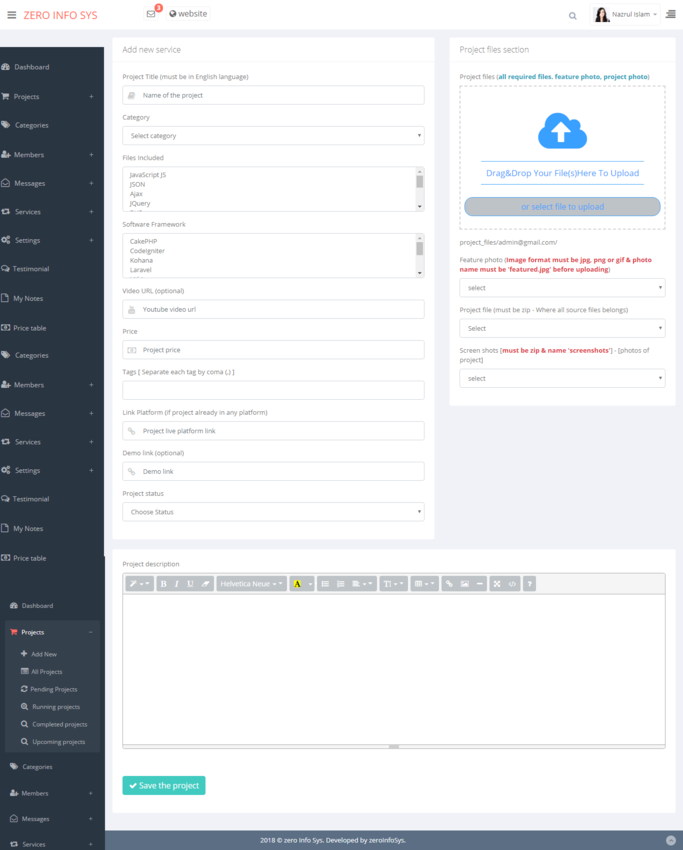 member can submit a project to the admin. After verification, it will be shown for