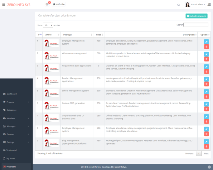 • Unlimited Products adding system.