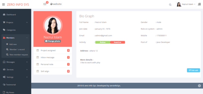 Project Management System allows multiple admin and multiple members.